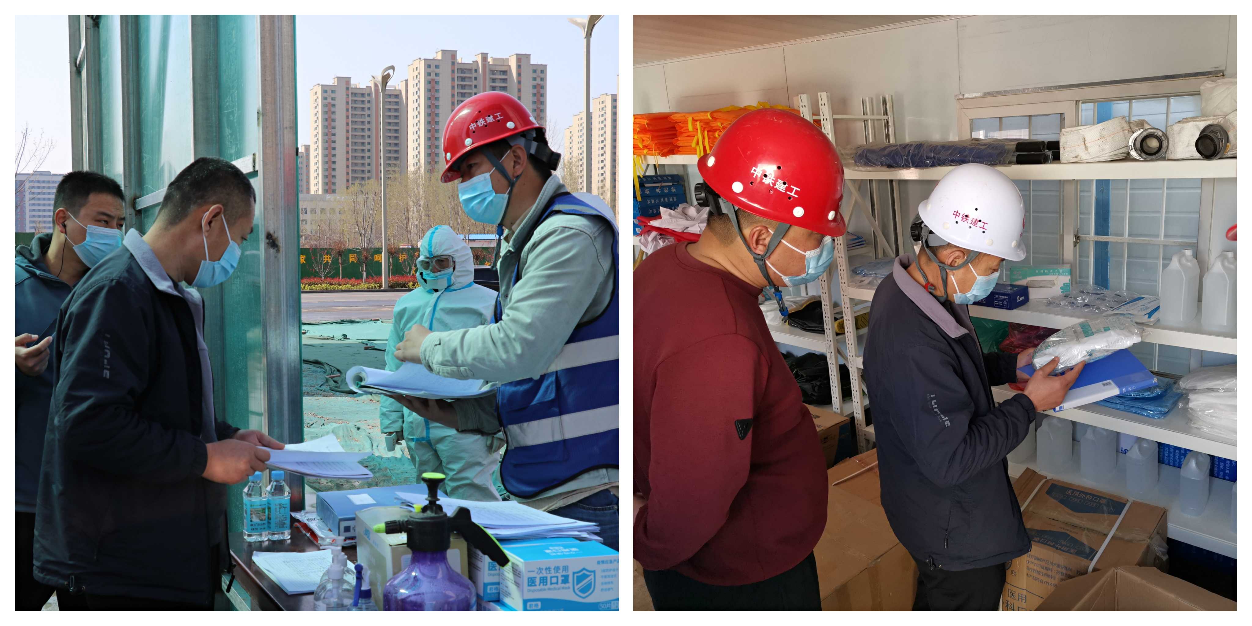 檢查組首先聽取了各項目負(fù)責(zé)人關(guān)于項目現(xiàn)場疫情防控工作的情況匯報,隨后認(rèn)真查看了外來人員和車輛進(jìn)出登記表、管理人員每日健康狀況表、場地消毒記錄等材料,檢查了防疫物資儲備情況和餐廳用餐情況。