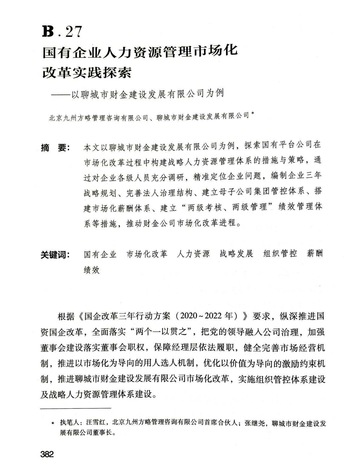 近日,中國(guó)人事科學(xué)研究院發(fā)布《中國(guó)企業(yè)人力資源發(fā)展報(bào)告(2022)》,聊城市《國(guó)有企業(yè)人力資源市場(chǎng)化改革實(shí)踐探索案例---以聊城市財(cái)金建設(shè)發(fā)展集團(tuán)有限公司為例》入選。該報(bào)告屬于《人力資源藍(lán)皮書》系列,由中國(guó)人事科學(xué)研究院出版(隸屬于中華人民共和國(guó)人力資源和社會(huì)保障部),是我國(guó)干部人事改革、人才資源開(kāi)發(fā)、人力資源管理和公共行政學(xué)研究的唯一國(guó)家級(jí)專業(yè)研究機(jī)構(gòu),是中央人才工作協(xié)調(diào)小組辦公室命名的“人才理論研究基地”。此報(bào)告為年度出版,匯集了央企和地方國(guó)企、知名民營(yíng)企業(yè)和外資企業(yè)在人力資源開(kāi)發(fā)與管理、人事制度改革創(chuàng)新等方面的實(shí)踐探索,為我國(guó)企業(yè)人力資源開(kāi)發(fā)和管理工作提供了借鑒,為政府政策的制定提供了參考。2022年度中國(guó)人力資源發(fā)展報(bào)告共入選7篇案例,除市財(cái)金集團(tuán)為地市級(jí)國(guó)有企業(yè)外,其余均為軍工、能源、運(yùn)輸類央企。